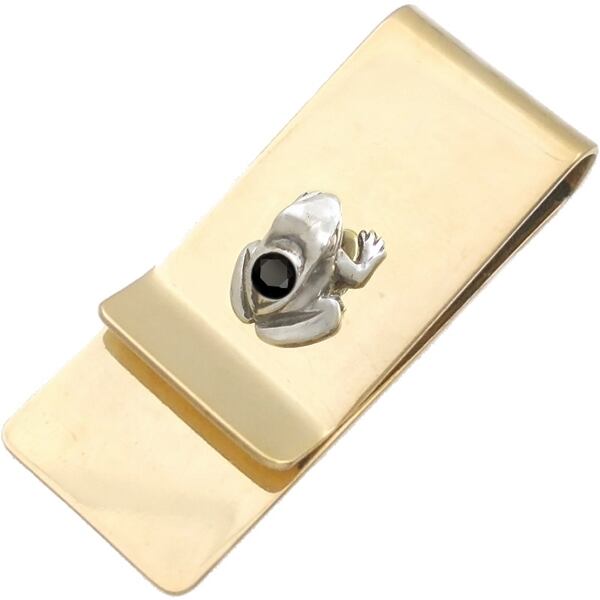 ★ホワイト仕上げと燻し仕上げのシルバーのカエルに誕生石をセッティングしたブラスマネークリップ。。