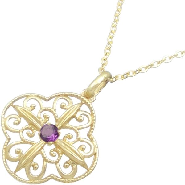 (2月)アメジスト ゴールドコート オリエントクロス シルバーペンダントネックレス 誕生石*BP-1083
