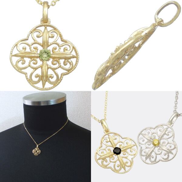 (8月)ペリドット ゴールドコート オリエントクロス シルバーペンダントネックレス 誕生石*BP-1083