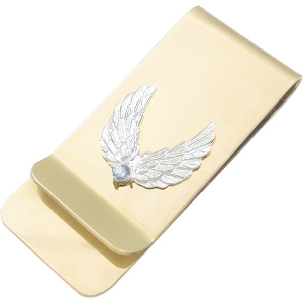 ★2枚の翼が開くウイングモチーフとバースデーストーンのブラスボディマネークリップ。