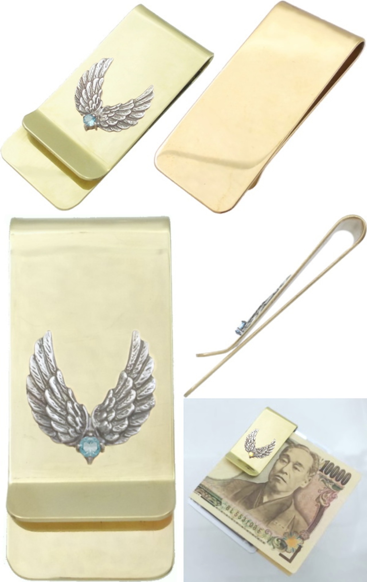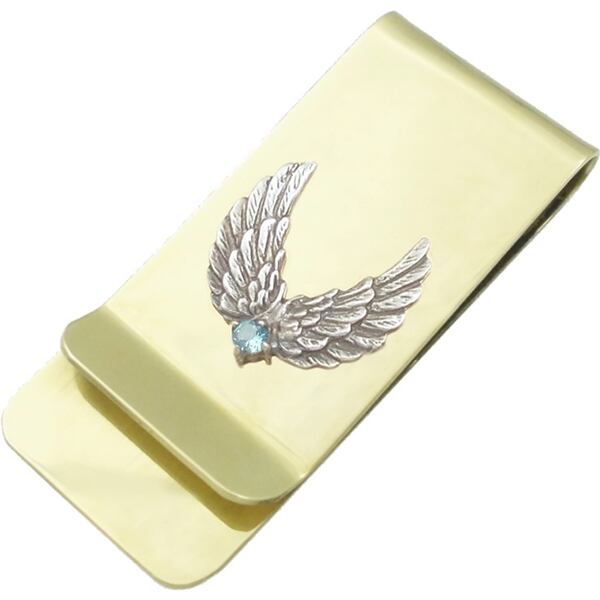 ★2枚の翼が開くウイングモチーフとバースデーストーンのブラスボディマネークリップ。