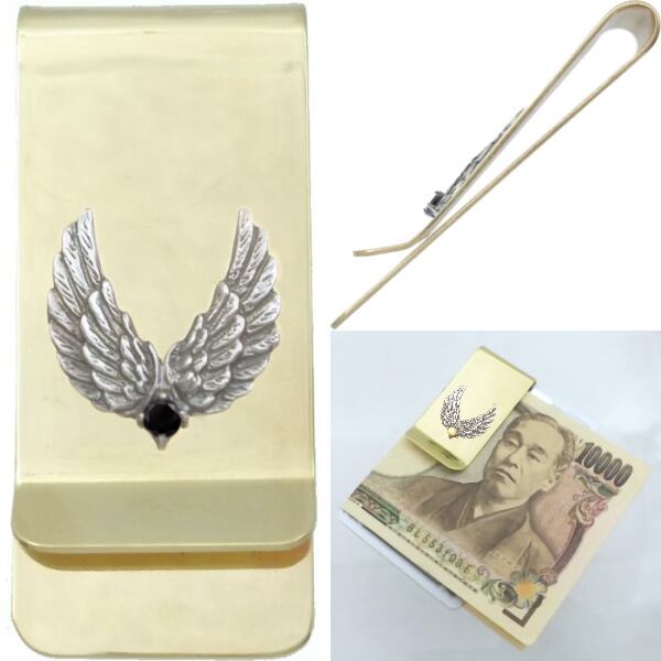 ★2枚の翼が開くウイングモチーフとバースデーストーンのブラスボディマネークリップ。