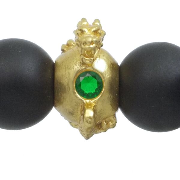 (5月)エメラルドグラスゴールドコート ドラゴンボール シルバー マッドオニキスブレスレット 誕生石*BB-1039