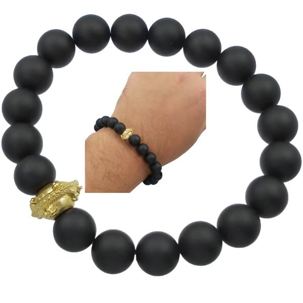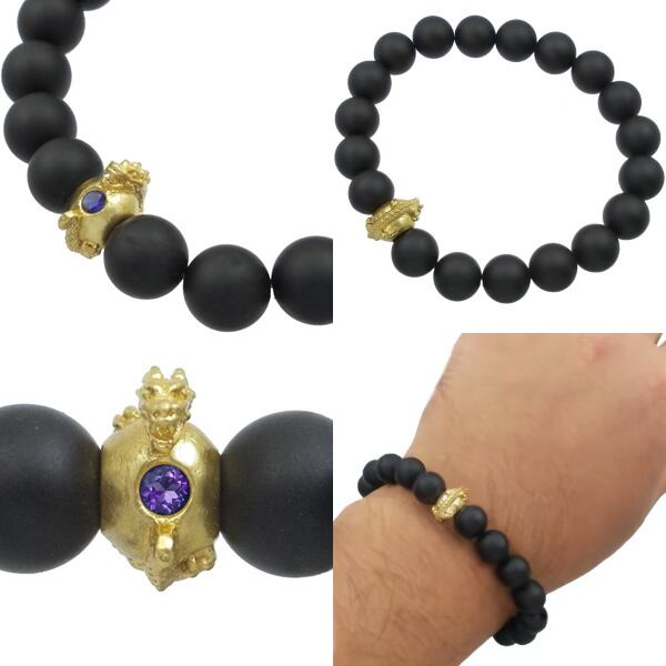 忍耐と成長に導くオニキスは成功をもたらすお守りとしても人気の天然石。セラミックゴールドにコーティングされた誕生石を守る様に取り巻くリアルな龍がモチーフのビーズブレス、ブラック、イエローのジルコニアも選べバースデーストーンに拘らずラッキーカラーで選べるのも◎。
