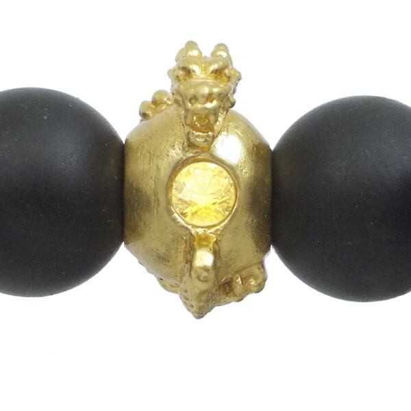 忍耐と成長に導くオニキスは成功をもたらすお守りとしても人気の天然石。セラミックゴールドにコーティングされた誕生石を守る様に取り巻くリアルな龍がモチーフのビーズブレス、ブラック、イエローのジルコニアも選べバースデーストーンに拘らずラッキーカラーで選べるのも◎。