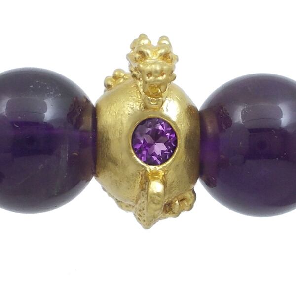 (2月)アメジストゴールドコート ドラゴンボール シルバーデープアメジストブレスレット 誕生石*BB-1040