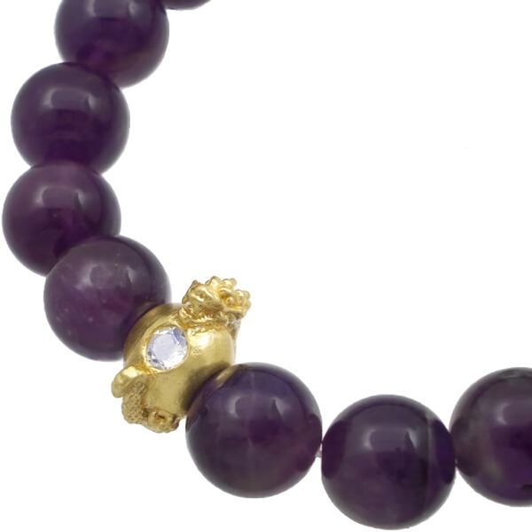 安らぎをもたらすアメジストはストレスを癒すお守りとしても人気の天然石。セラミックゴールドにコーティングされた誕生石を守る様に取り巻くリアルな龍がモチーフのビーズブレス、ブラック、イエローのジルコニアも選べバースデーストーンに拘らずラッキーカラーで選べるのも◎。
