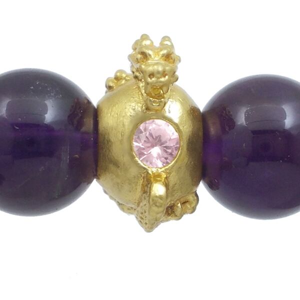 (10月)ピンクトルマリンゴールドコート ドラゴンボール シルバーデープアメジストブレスレット 誕生石*BB-1040
