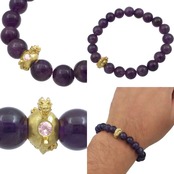 ★濃い目のアメジストとシルバー多彩な石をセッティングしたドランゴンブレスレット。