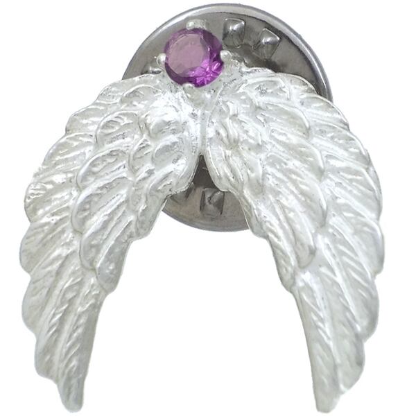 (2月)アメジスト ホワイト エンジェル ウイング シルバーピンバッジ ピンズ 誕生石*BK-1147 | シルバーアクセサリーバズショット