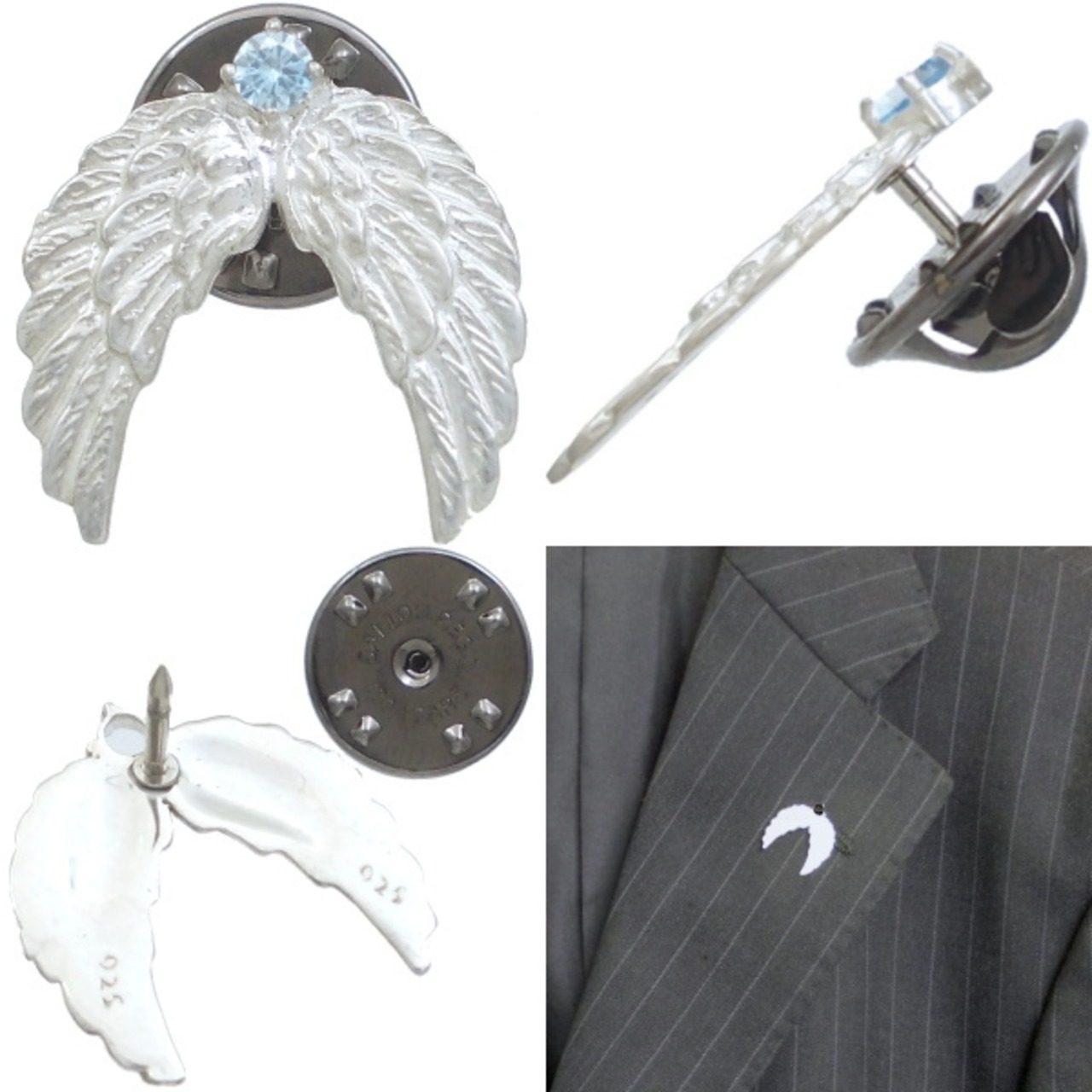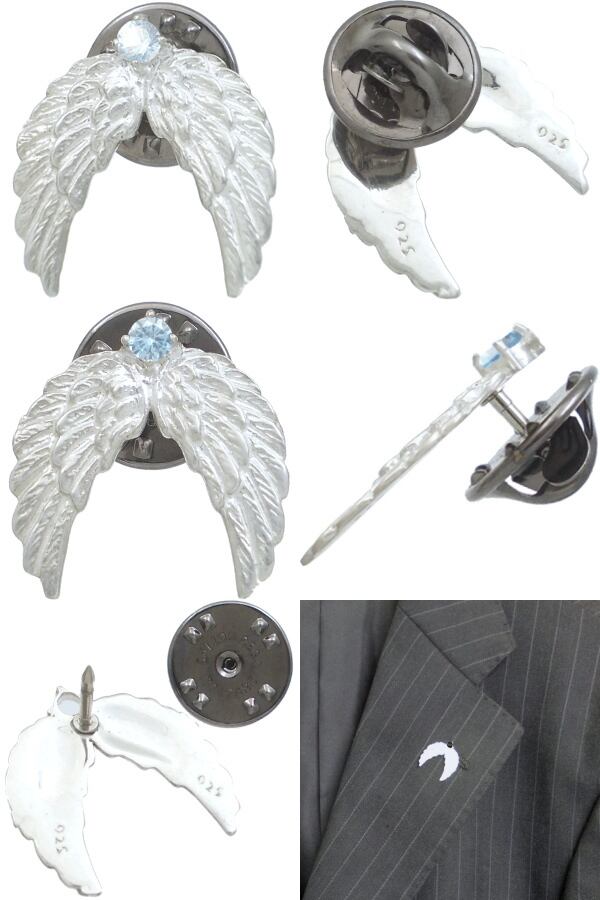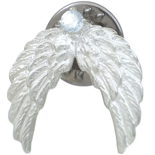 (3月)アクアマリン ホワイト エンジェル ウイング シルバーピンバッジ ピンズ 誕生石*BK-1147