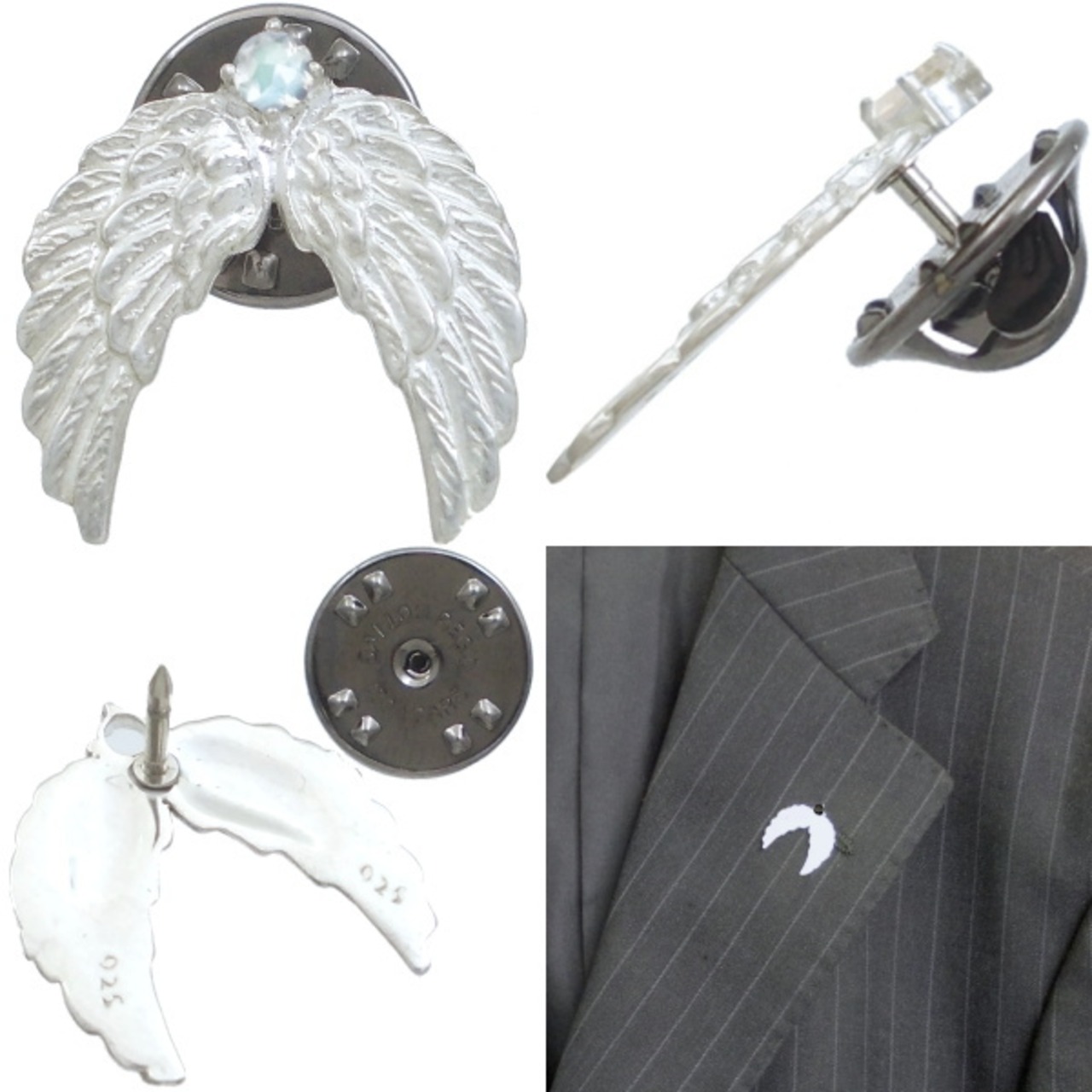 (6月)ブルームーンストーン ホワイト エンジェル ウイング シルバーピンバッジ ピンズ 誕生石*BK-1147