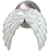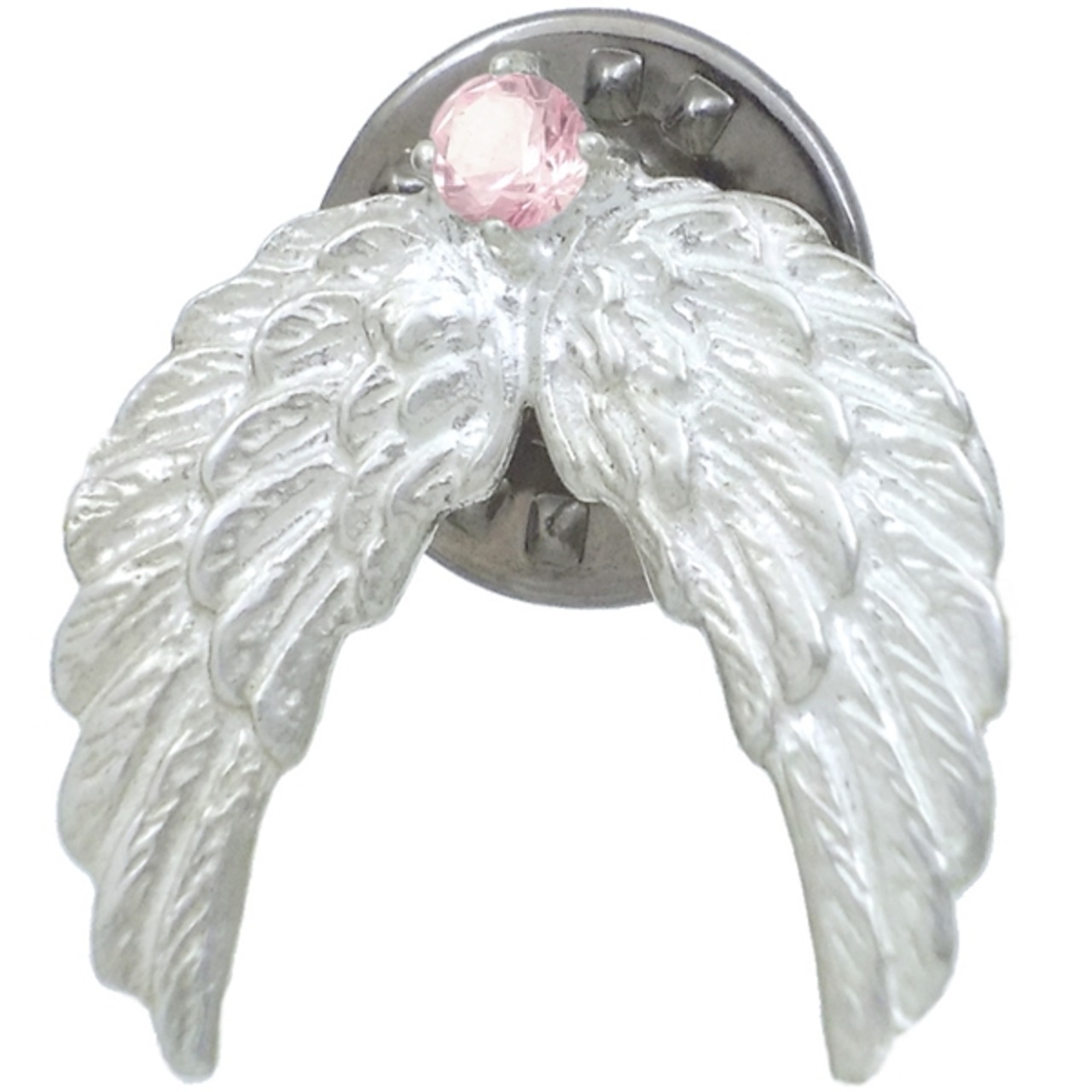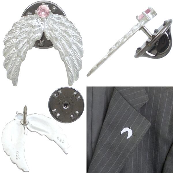 (10月)ピンクトルマリン ホワイト エンジェル ウイング シルバーピンバッジ ピンズ 誕生石*BK-1147