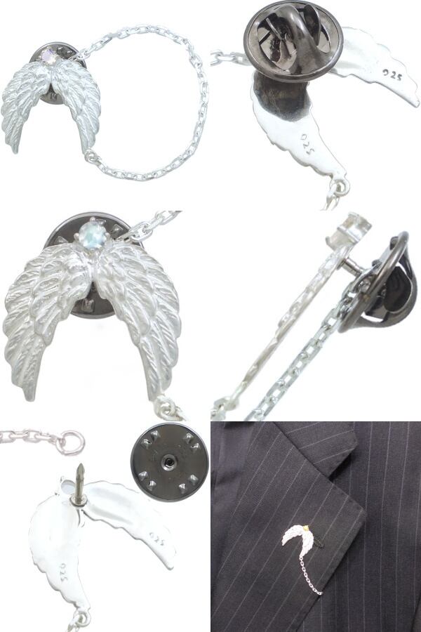 (6月)ブルームーンストーン ホワイト エンジェル ウイング チェーン シルバーピンバッジ ピンズ 誕生石*BK-1148