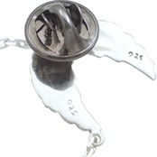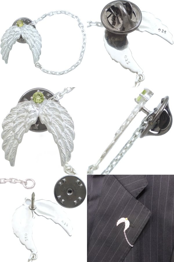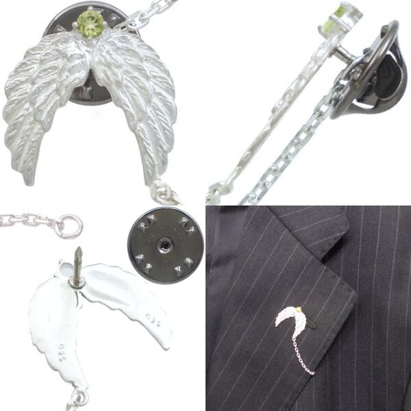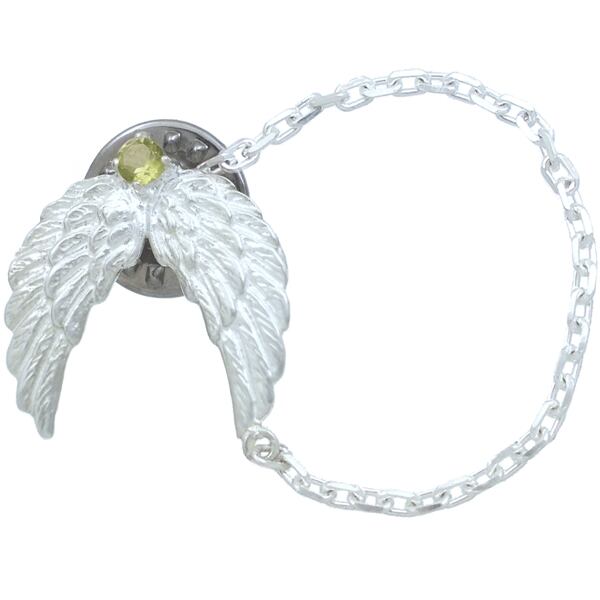 (8月)ペリドット ホワイト エンジェル ウイング チェーン シルバーピンバッジ ピンズ 誕生石*BK-1148