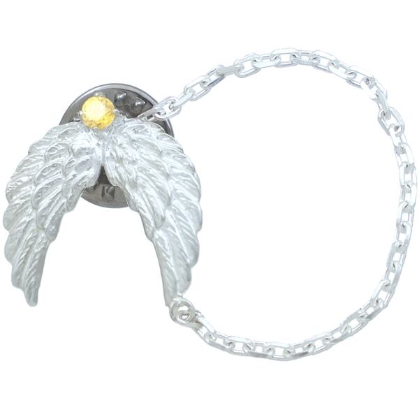 イエローCZ ホワイト エンジェル ウイング チェーン シルバーピンバッジ ピンズ*BK-1148
