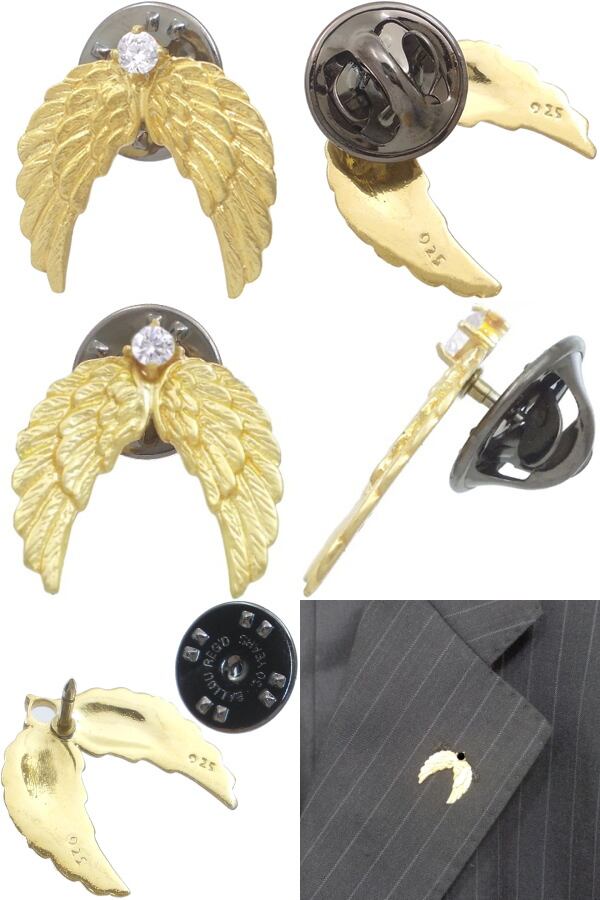 (4月)ジルコニア ゴールドコート エンジェル ウイング シルバーピンバッジ ピンズ 誕生石*BK-1149