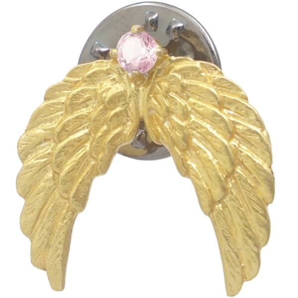 (10月)ピンクトルマリン ゴールドコート エンジェル ウイング シルバーピンバッジ ピンズ 誕生石*BK-1149