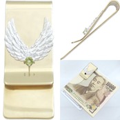 ★2枚の翼が開くウイングモチーフとバースデーストーンのブラスボディマネークリップ。