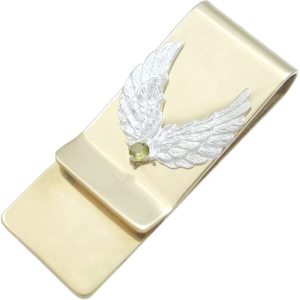 (8月)ペリドット ホワイト ツイン ウイング スリム ブラスマネークリップ 誕生石*BM-1056