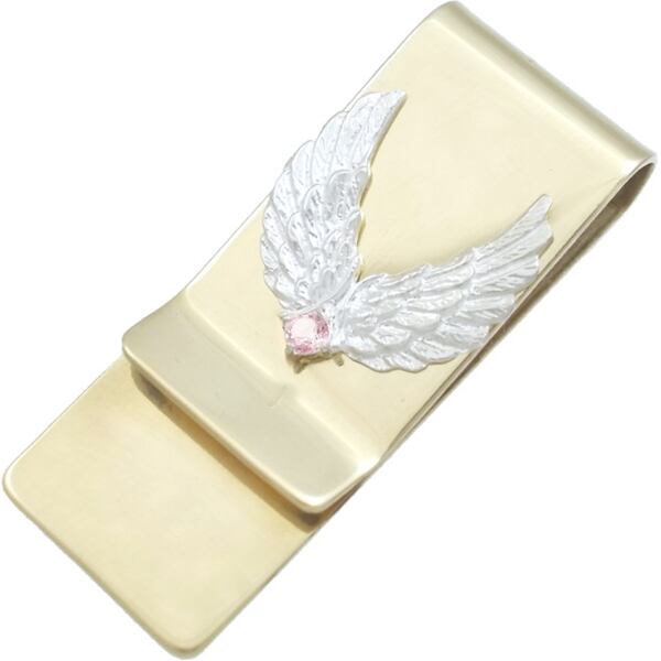 ★2枚の翼が開くウイングモチーフとバースデーストーンのブラスボディマネークリップ。