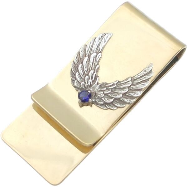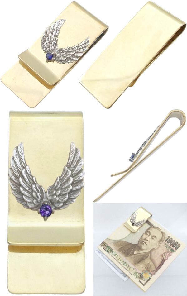 ★2枚の翼が開くウイングモチーフとバースデーストーンのブラスボディマネークリップ。