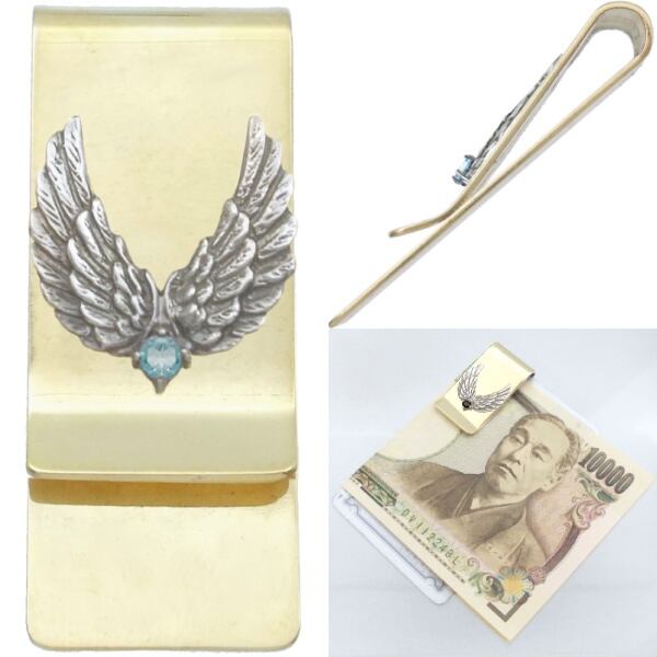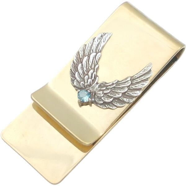 ★2枚の翼が開くウイングモチーフとバースデーストーンのブラスボディマネークリップ。
