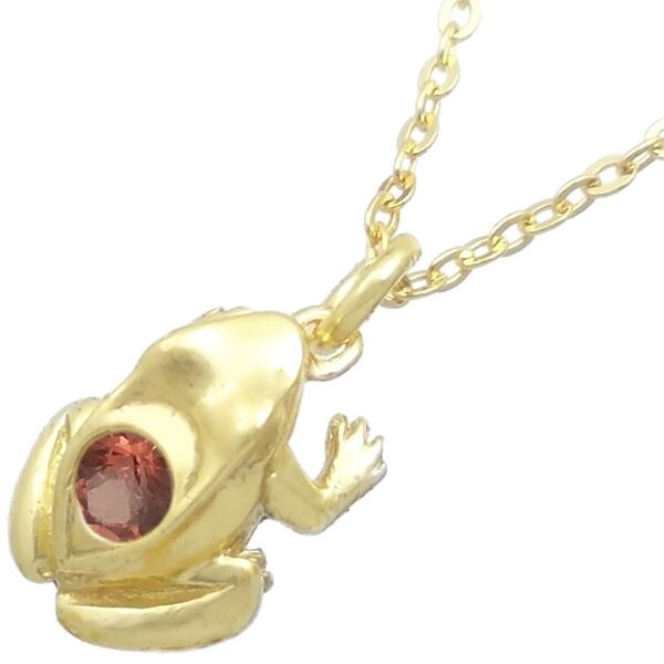 (1月)ガーネット ゴールドコート フロッグ シルバーペンダントネックレス 誕生石*BP-1084