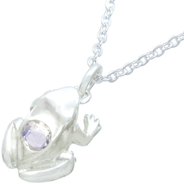 (6月)ブルームーンストーン ホワイト フロッグ シルバーペンダントネックレス 誕生石*BP-1085