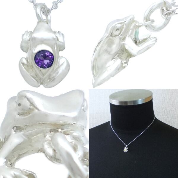 ★仕上げ違いでカラーが楽しめる福を迎えるフロッグと誕生石のプチネックレス。