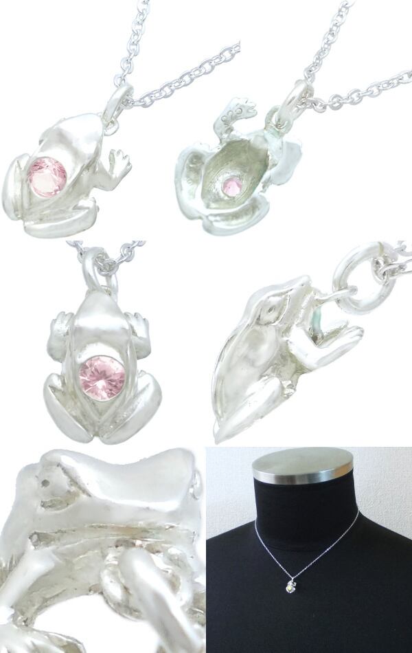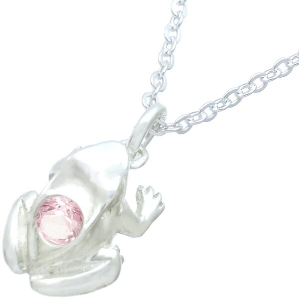 (10月)ピンクトルマリン ホワイト フロッグ シルバーペンダントネックレス 誕生石*BP-1085
