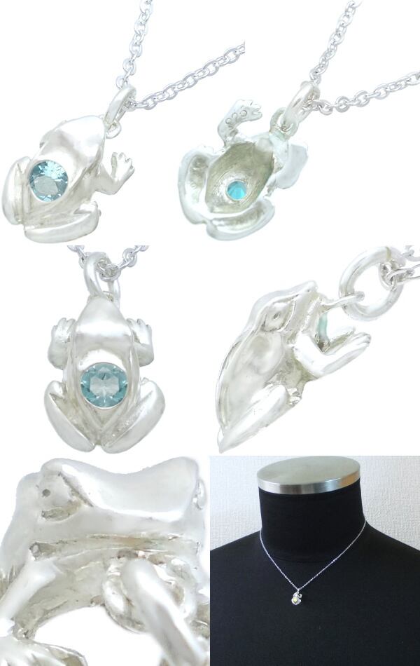 (11月)ブルートパーズ ホワイト フロッグ シルバーペンダントネックレス 誕生石*BP-1085