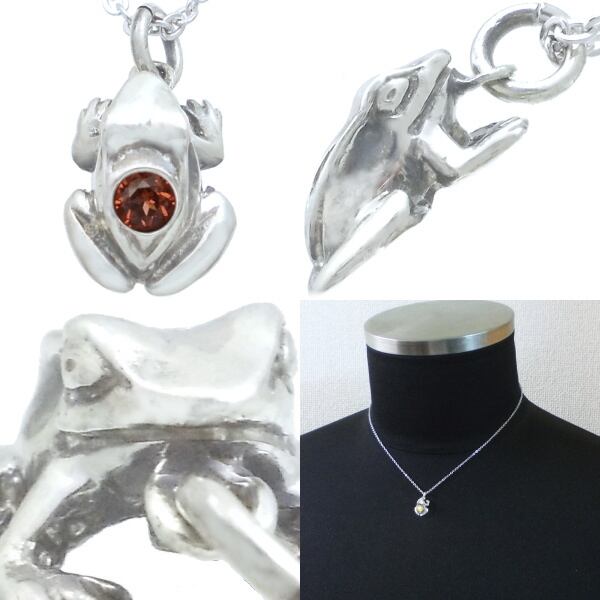 (1月)ガーネット ブラック フロッグ シルバーペンダントネックレス 誕生石*BP-1086