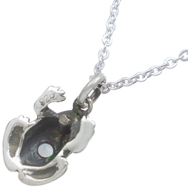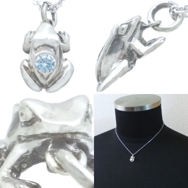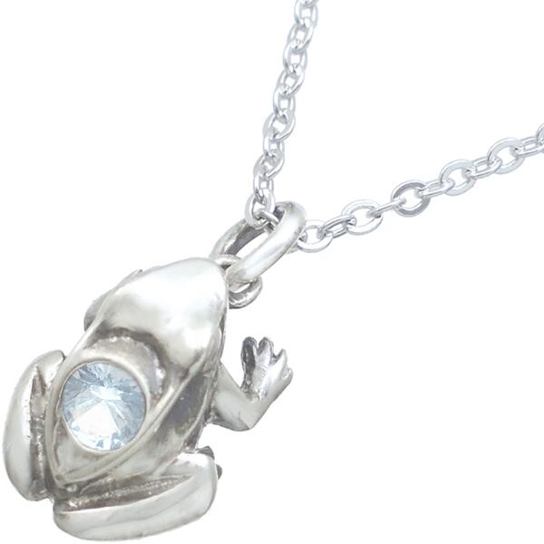 (3月)アクアマリン ブラック フロッグ シルバーペンダントネックレス 誕生石*BP-1086