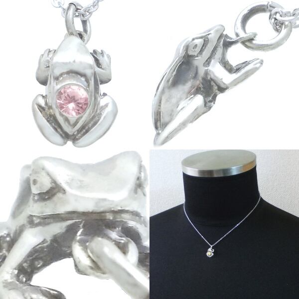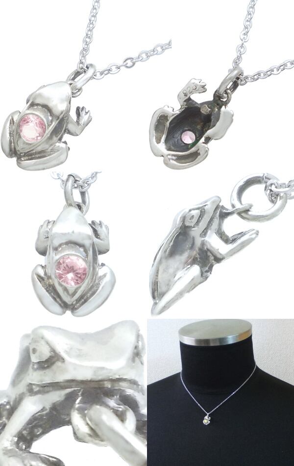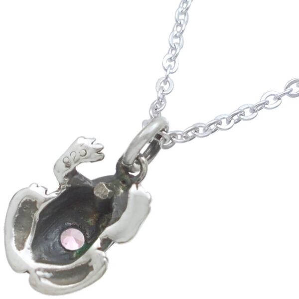 (10月)ピンクトルマリン ブラック フロッグ シルバーペンダントネックレス 誕生石*BP-1086