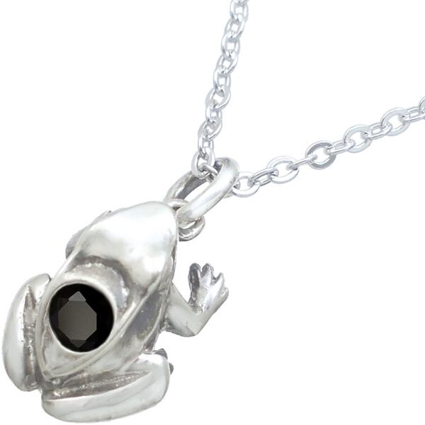 ブラックCZ ブラック フロッグ シルバーペンダントネックレス*BP-1086