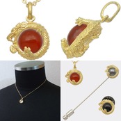 パワーの宿る天然石をシッカリと掴むセラミックゴールドのドラゴンが一際目を引くペンダントヘッド。その強力なパワーで運気をもたらす象徴としても知られる龍と多様なストーンバリェーションとのコンビが楽しめるリアルなドラゴン&ストーン。