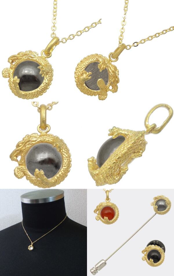 パワーの宿る天然石をシッカリと掴むセラミックゴールドのドラゴンが一際目を引くペンダントヘッド。その強力なパワーで運気をもたらす象徴としても知られる龍と多様なストーンバリェーションとのコンビが楽しめるリアルなドラゴン&ストーン。