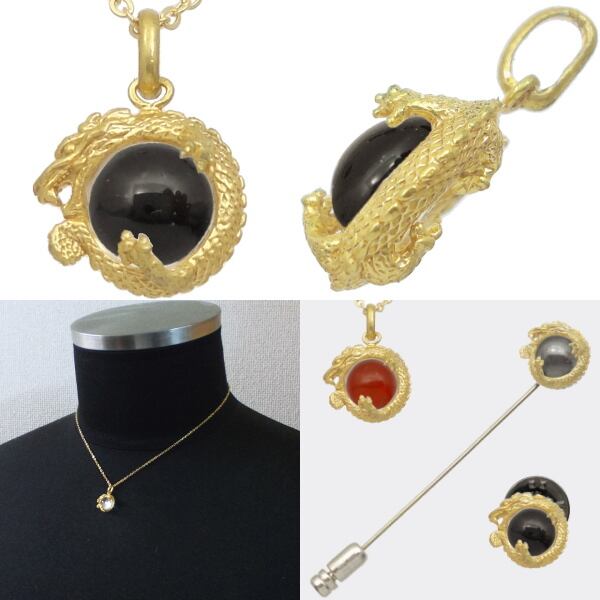 ちまたに溢れる開運グッズの様なチープさは微塵も感じられないモチーフの作りこみとストーンセッティングとのバランスも見事。