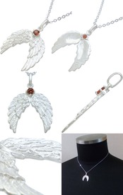 ★仕上げ違いでカラーが楽しめる天使の羽がモチーフの誕生石のネックレス。