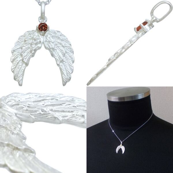 (1月)ガーネット ホワイト エンジェル ウイング シルバーチャームネックレス 誕生石*BP-1088