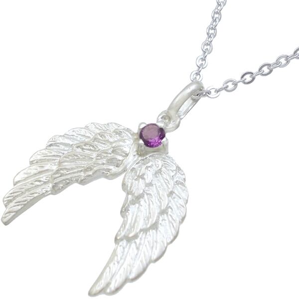 (2月)アメジスト ホワイト エンジェル ウイング シルバーチャームネックレス 誕生石*BP-1088