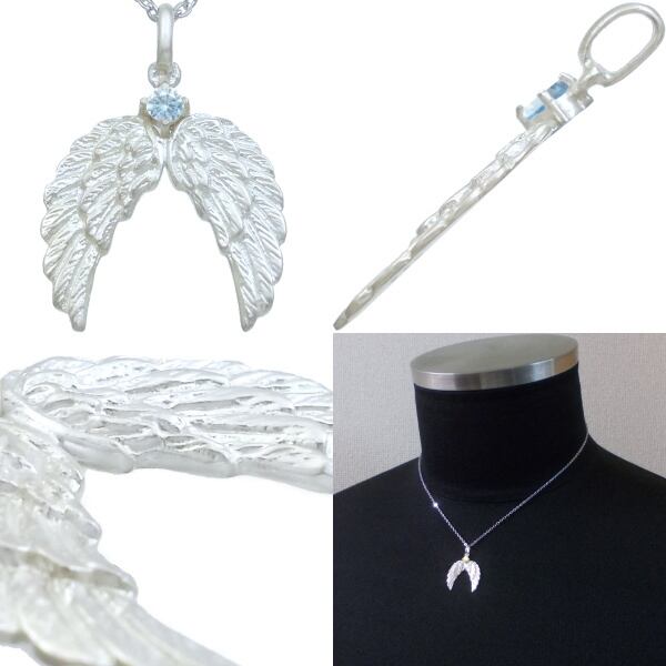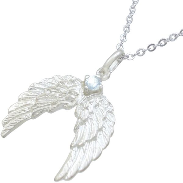 (3月)アクアマリン ホワイト エンジェル ウイング シルバーチャームネックレス 誕生石*BP-1088
