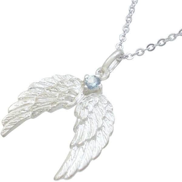 (12月)タンザナイト ホワイト エンジェル ウイング シルバーチャームネックレス 誕生石*BP-1088