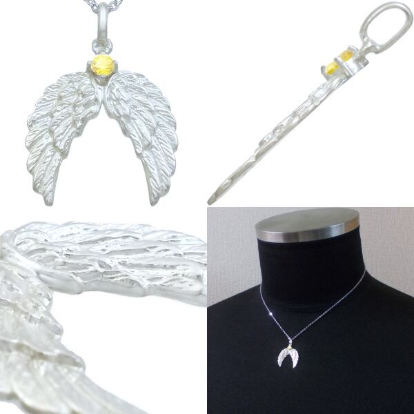 ★仕上げ違いでカラーが楽しめる天使の羽がモチーフの誕生石のネックレス。