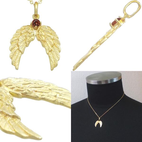 (1月)ガーネット ゴールドコート エンジェル ウイング シルバーチャームネックレス 誕生石*BP-1089