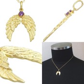 (2月)アメジスト ゴールドコート エンジェル ウイング シルバーチャームネックレス 誕生石*BP-1089