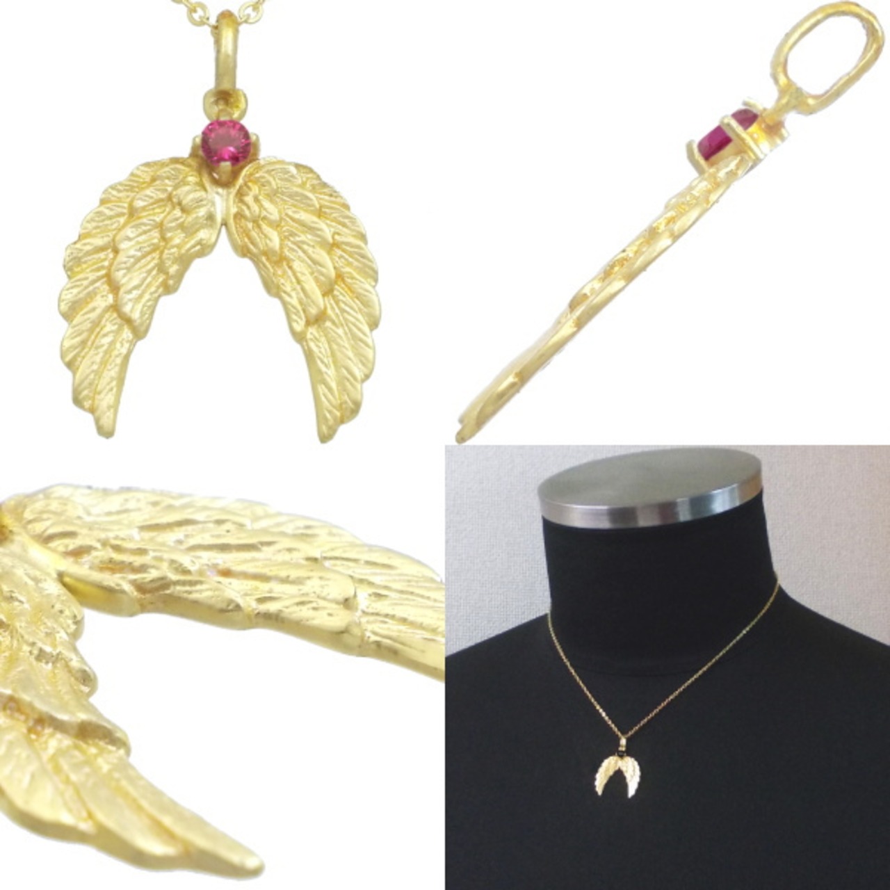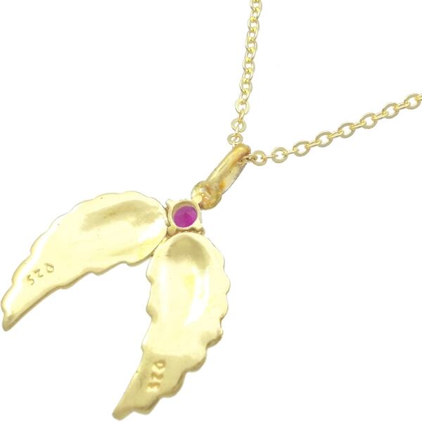 (7月)ルビー ゴールドコート エンジェル ウイング シルバーチャームネックレス 誕生石*BP-1089