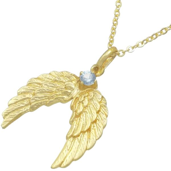 (12月)タンザナイト ゴールドコート エンジェル ウイング シルバーチャームネックレス 誕生石*BP-1089