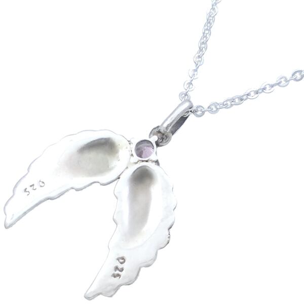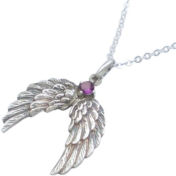 (2月)アメジスト ブラック エンジェル ウイング シルバーチャームネックレス 誕生石*BP-1090